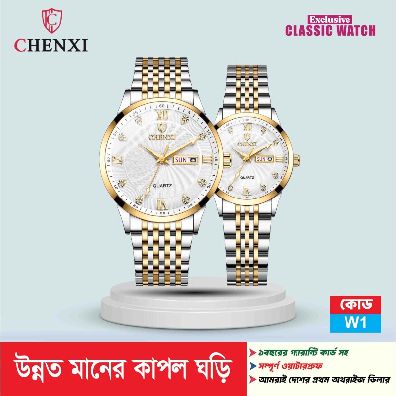 এই এক্সক্লুসিভ কাপল ওয়াচ সেটে পাবেন দুটি প্রিমিয়াম কোয়ার্টজ ঘড়ি – পুরুষ ও মহিলার জন্য পারফেক্টলি ম্যাচিং ডিজাইন। উন্নতমানের স্টেইনলেস স্টিল বডি, স্ক্র্যাচ-রেজিস্ট্যান্ট গ্লাস, ডে-ডেট ডিসপ্লে এবং আকর্ষণীয় ডায়াল ডিজাইন যোগ করবে আপনার লুকে অসাধারণ আভিজাত্য, ক্লাস এবং আধুনিকতা। যেকোনো ফর্মাল পার্টি, অফিস মিটিং বা ক্যাজুয়াল আউটিং-এ পরে নজর কাড়বেন সবার।